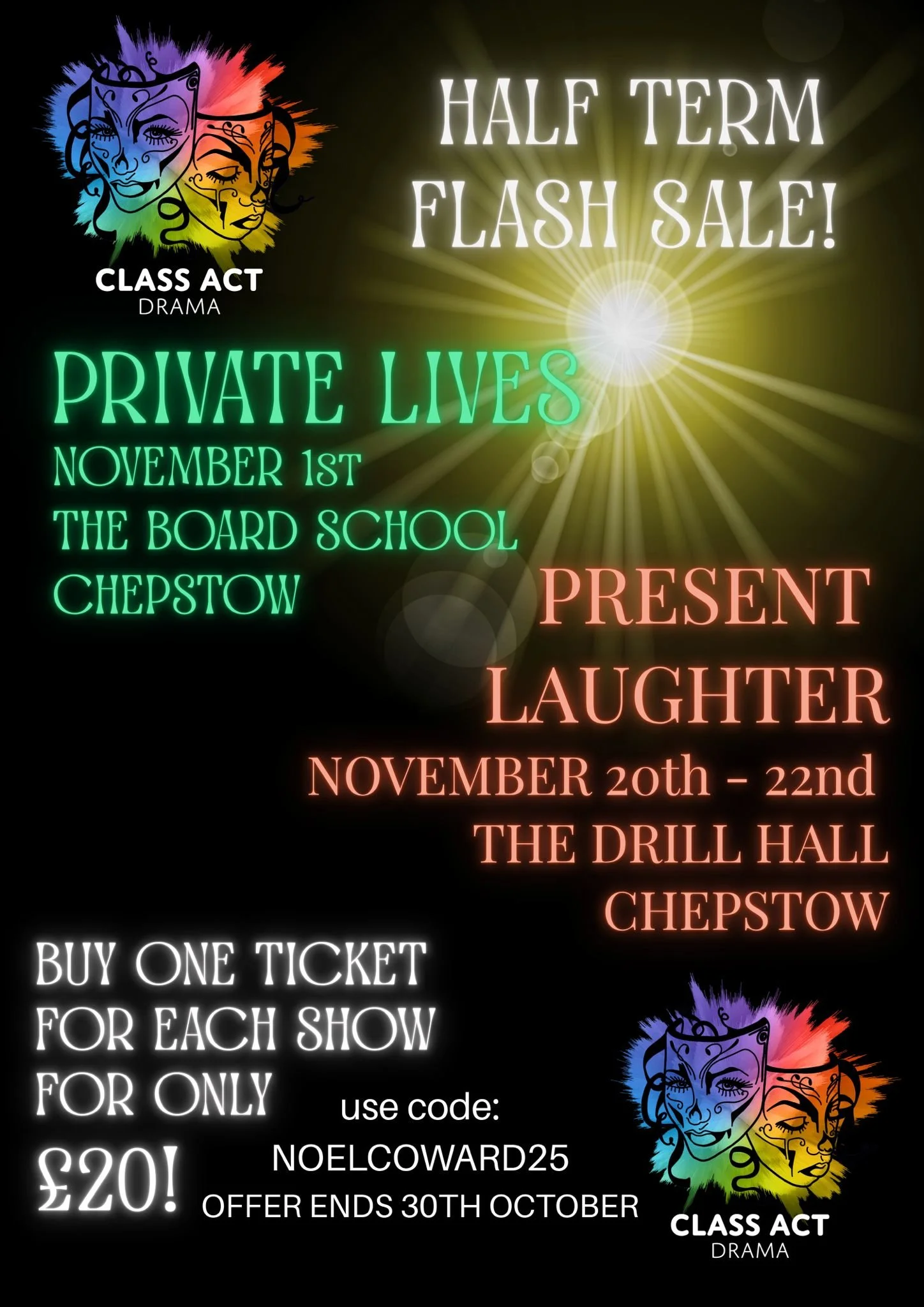 Fresh from our National NODA Award win, Class Act Theatre Company invites you to enjoy Private Lives and Present Laughter for just £20 total (normally £24).